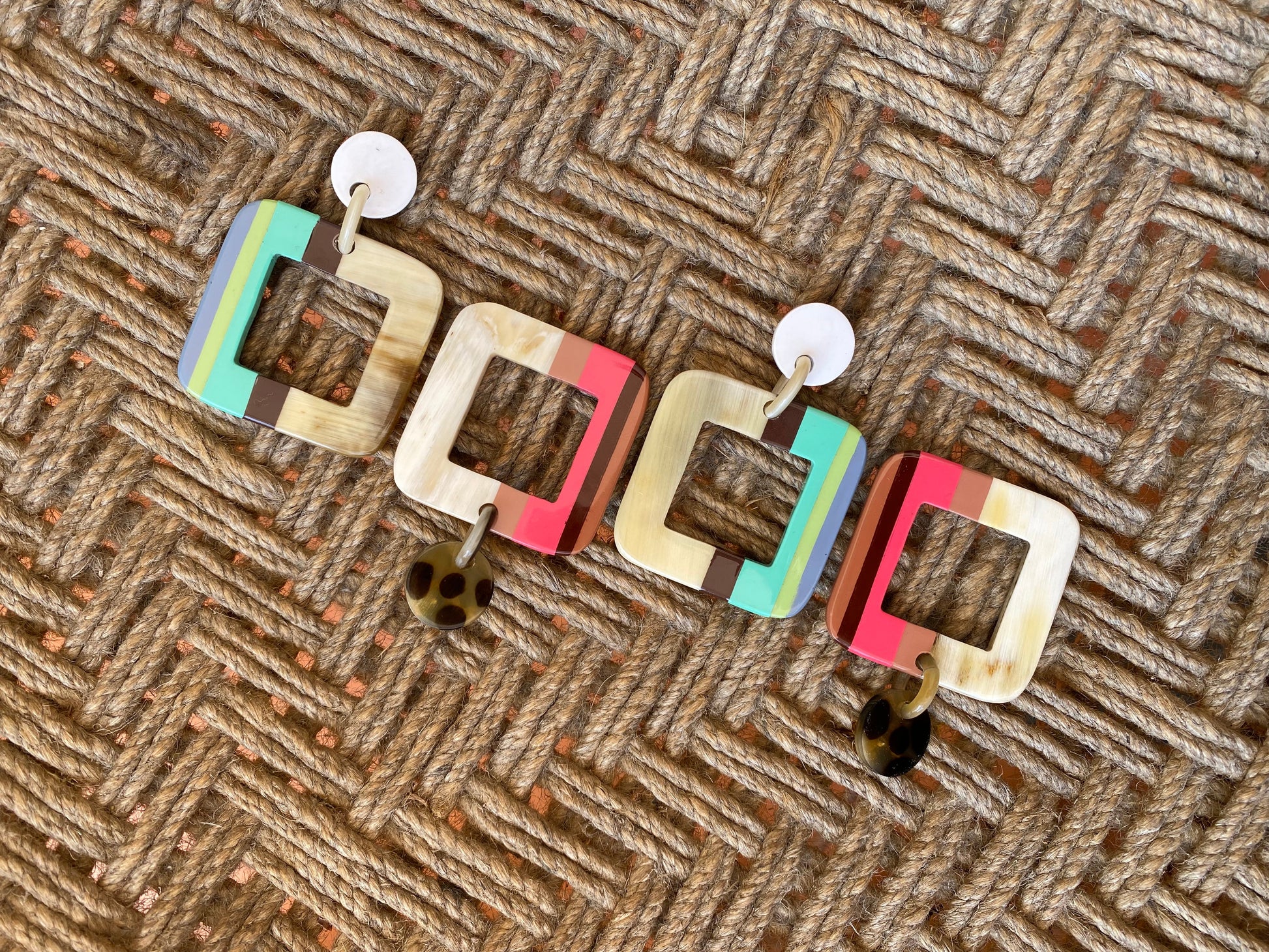 Colour: This earring is painted in salmon and pink. Each earring is hand painted and one of a kind. Due to its authenticity, the painted pattern, beads or other characteristics may be slightly different from the photo