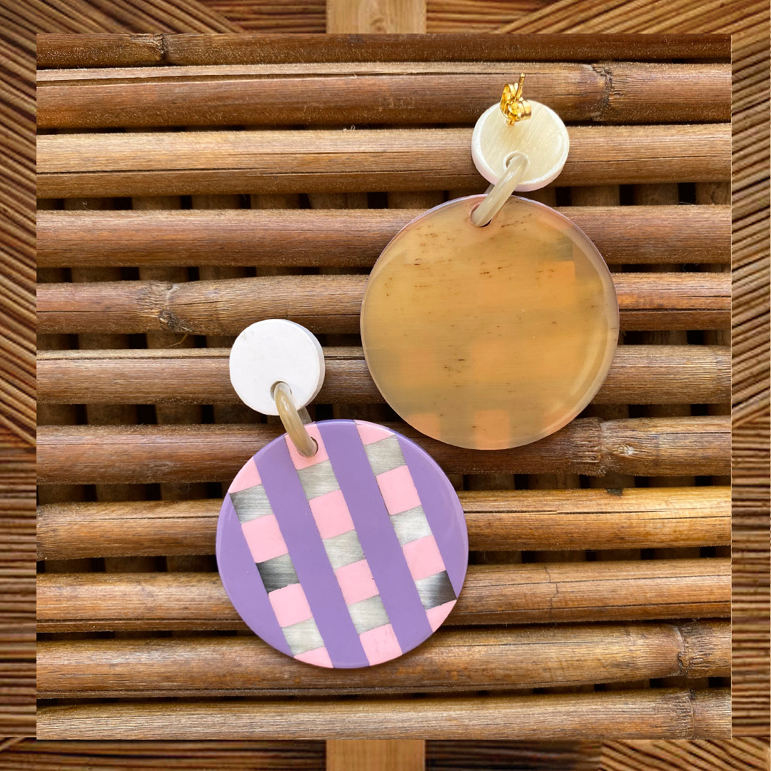 Colour: This earring is painted in lilac and pink. Each earring is hand painted and one of a kind. Due to its authenticity, the painted pattern, beads or other characteristics may be slightly different from the photo