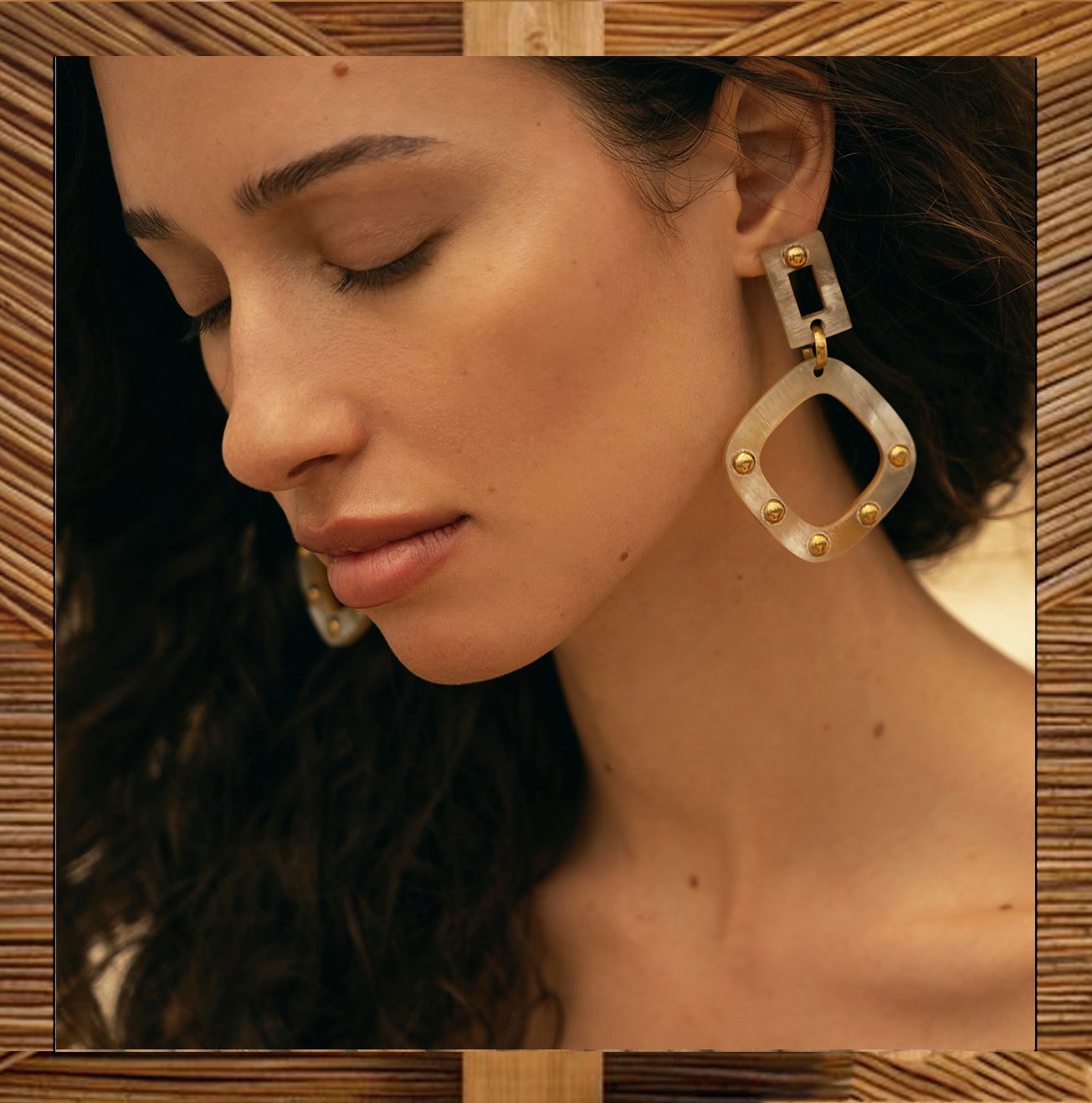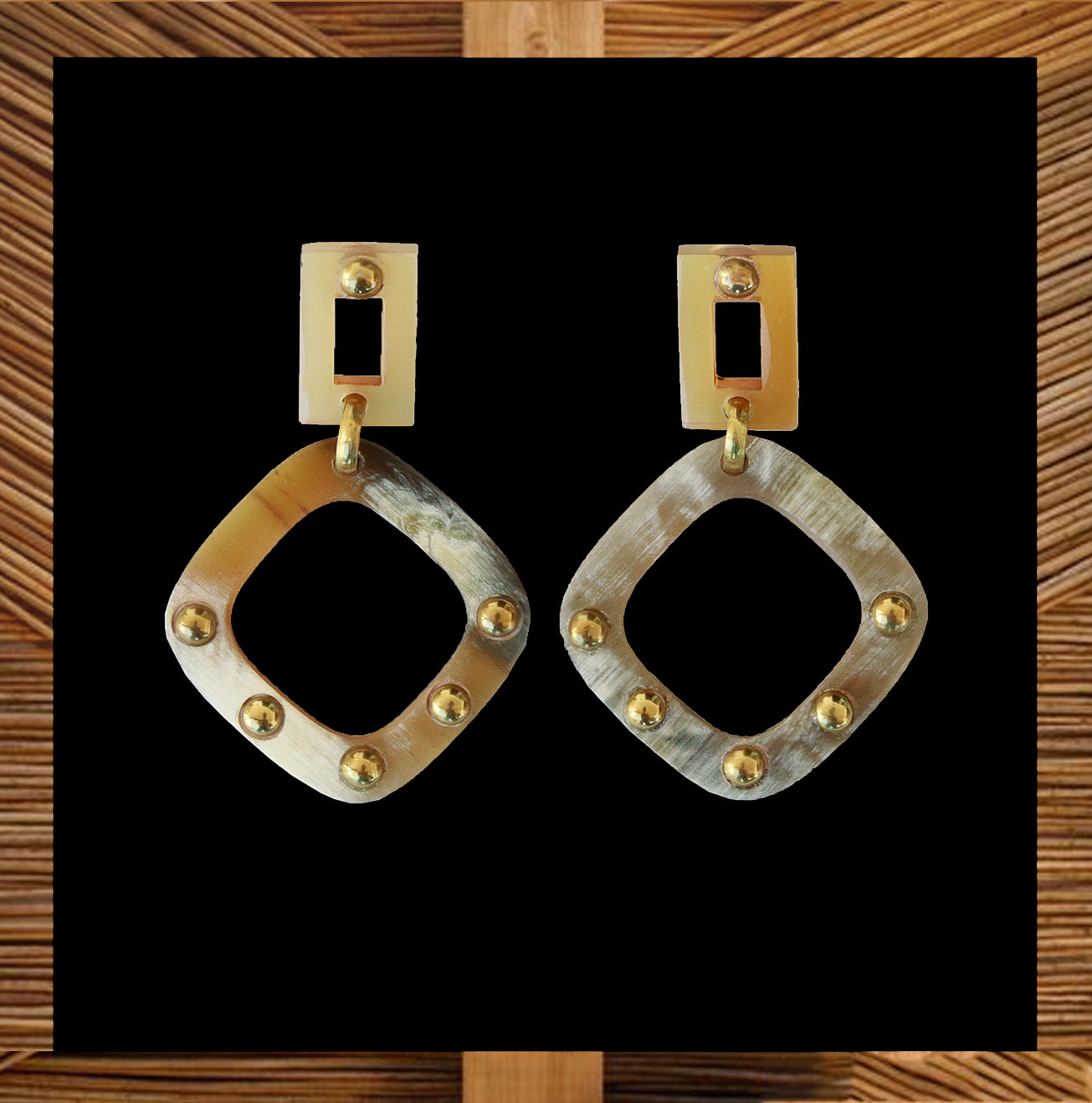 What this is: A beautiful upcycled brass and horn earring