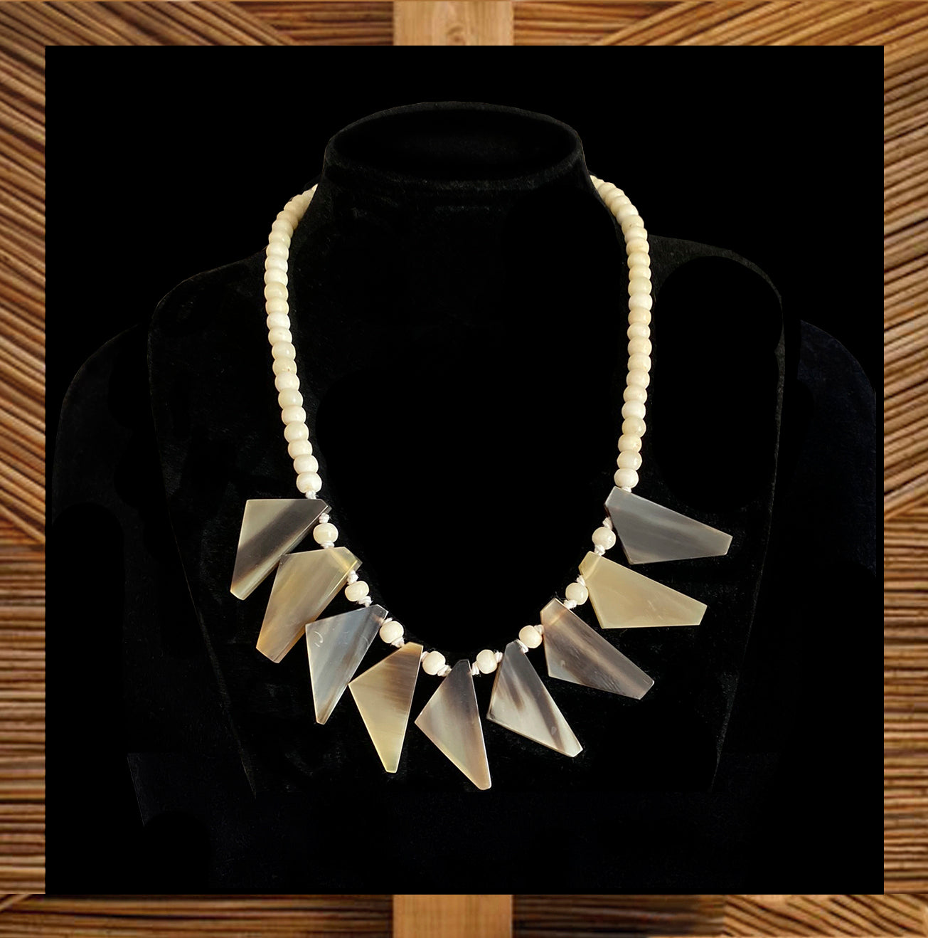 What this is: A beautiful upcycled and handmade necklace with polished horn and bone beads.